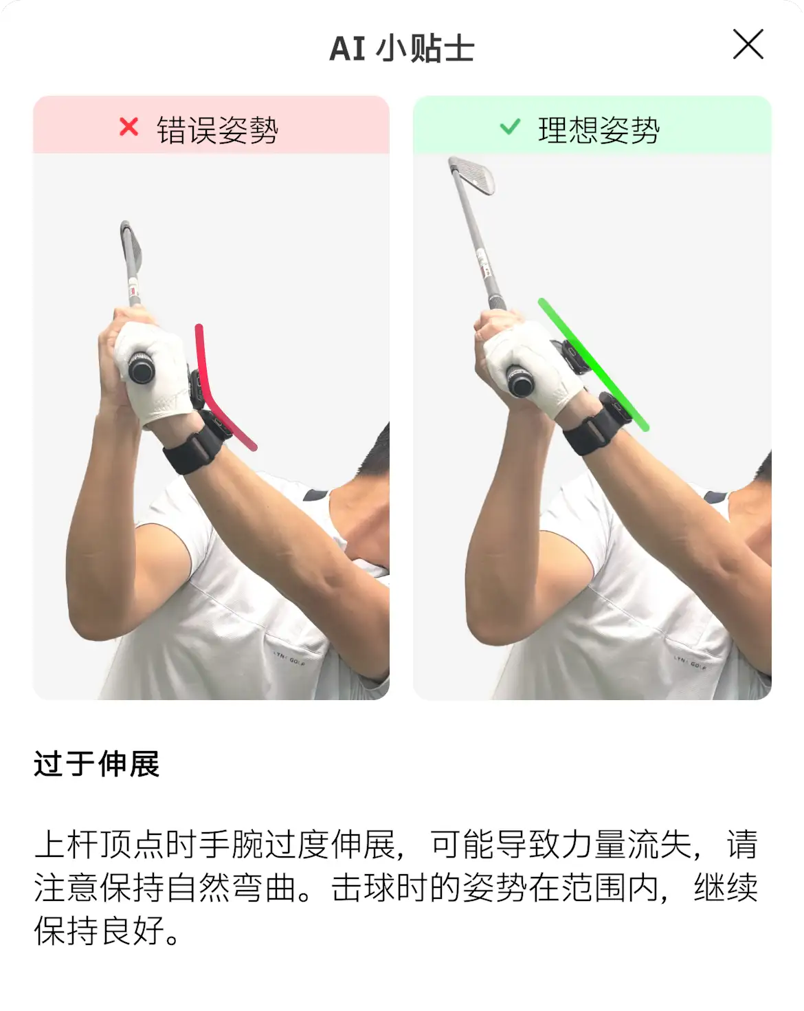 AI 将依据您的个人数据,识别挥杆动作特点并提供改善建议。
