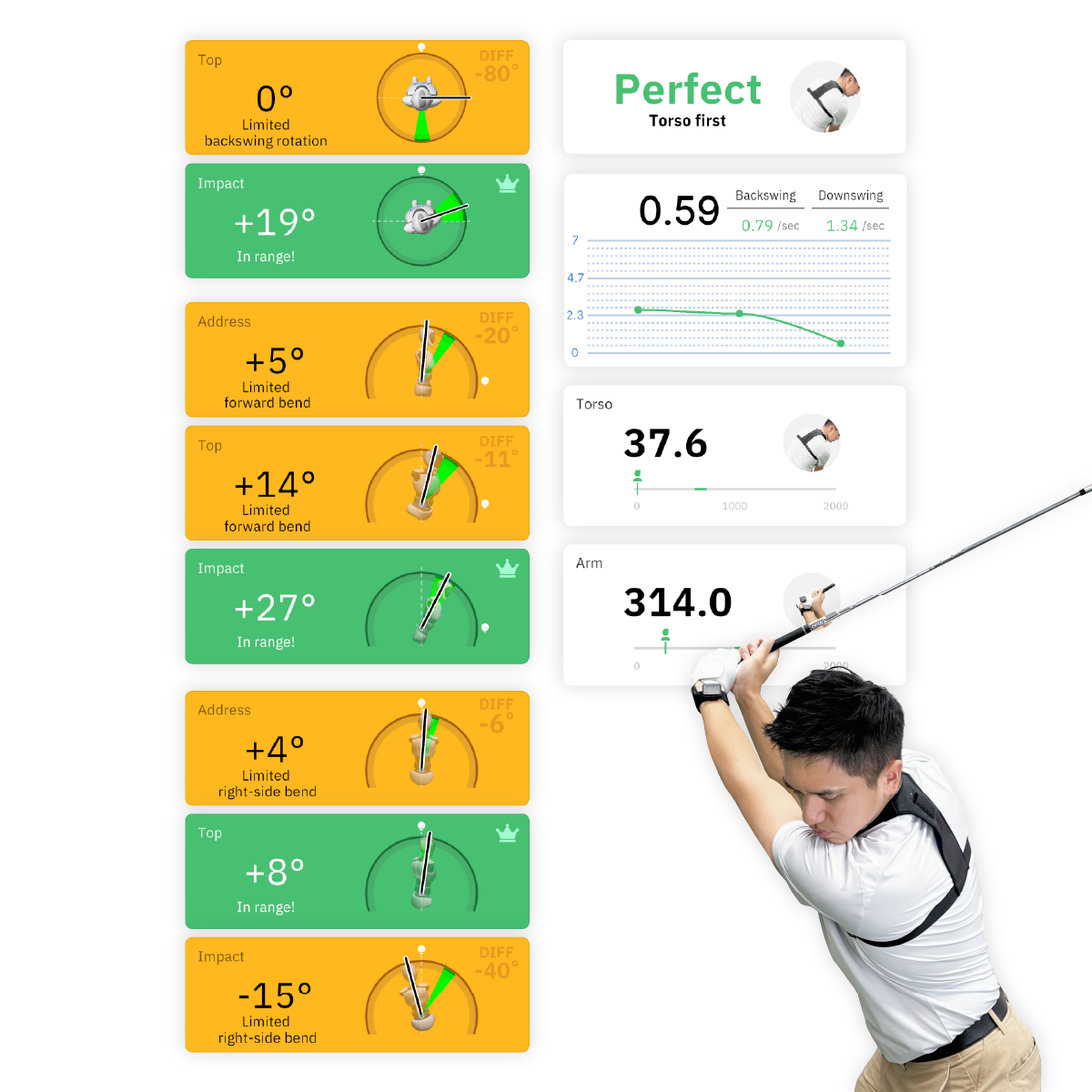 专注于躯干与脊椎角度控制,通过监测前倾与侧倾的变化,有助于减少打薄、打厚的失误,并支持保持流畅的挥杆节奏。