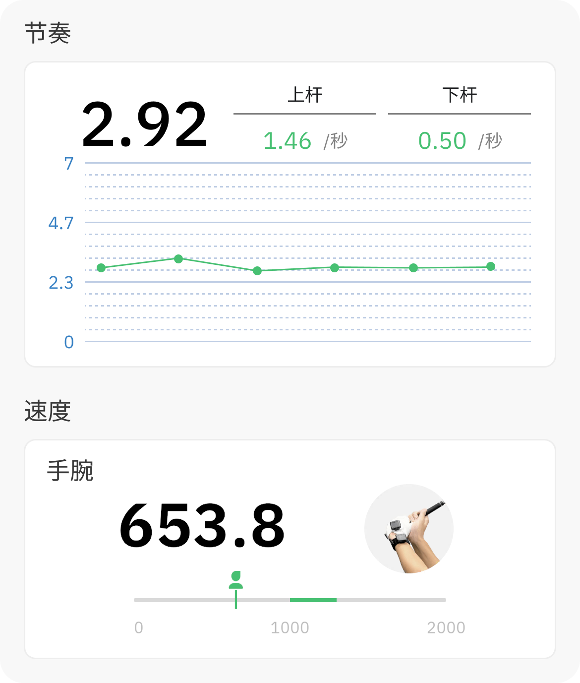 不仅提供全挥杆分析,更带来具有针对性的模块化训练数据,帮助您专注于细节修正,助力您追求更稳定、更有力的击球!