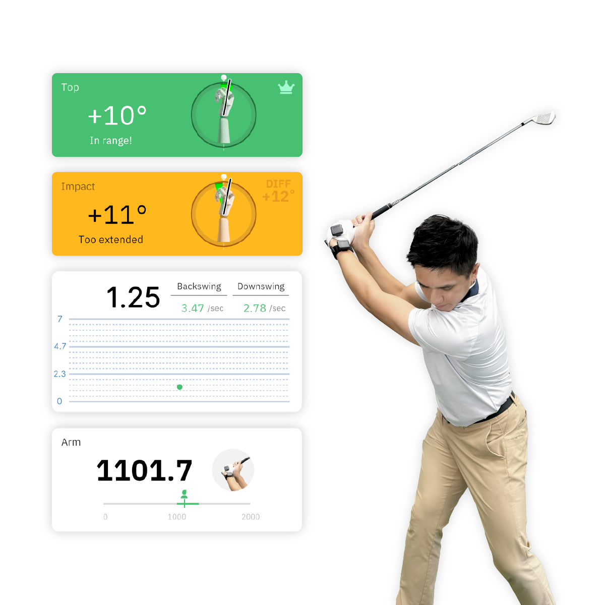 SwingMotion 通过专业级传感器与手机 App,实时追踪与记录手腕及身体动作,提供全面的数据反馈,有助于您的挥杆动作保持良好状态。